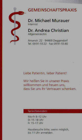 siehe Aktuelles, Telefonnummer bleibt, neue Sprechstundenzeiten!
